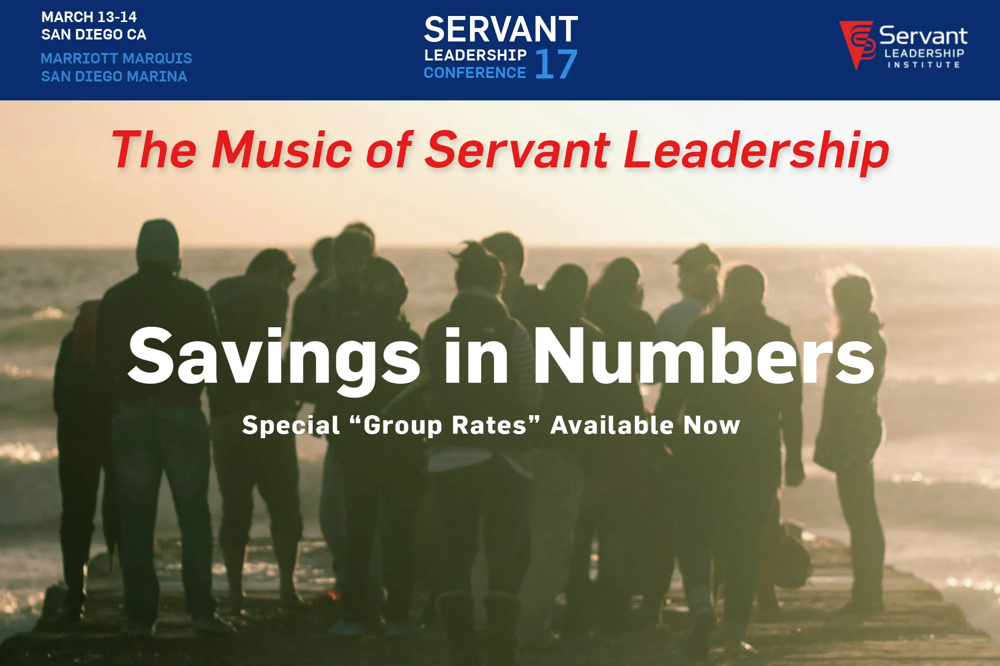 The theme for this year’s servant leadership conference hosted by the Servant Leadership Institute is, “The Music of Servant Leadership.” You may think this is an odd theme for a leadership conference, so let me tell you a bit about the powerful vision we have. Every speaker at our conference will discuss a different aspect of serving as we lead — with all these voices becoming the music of servant leadership. We are asking our audience to hear the music we hear. It’s the music of people thriving in what they do, of people actually enjoying coming to work every day, of finding meaning and purpose in not just their work but also in their lives. Martin Luther King Jr. said, “Everyone can be great because everyone can serve.”